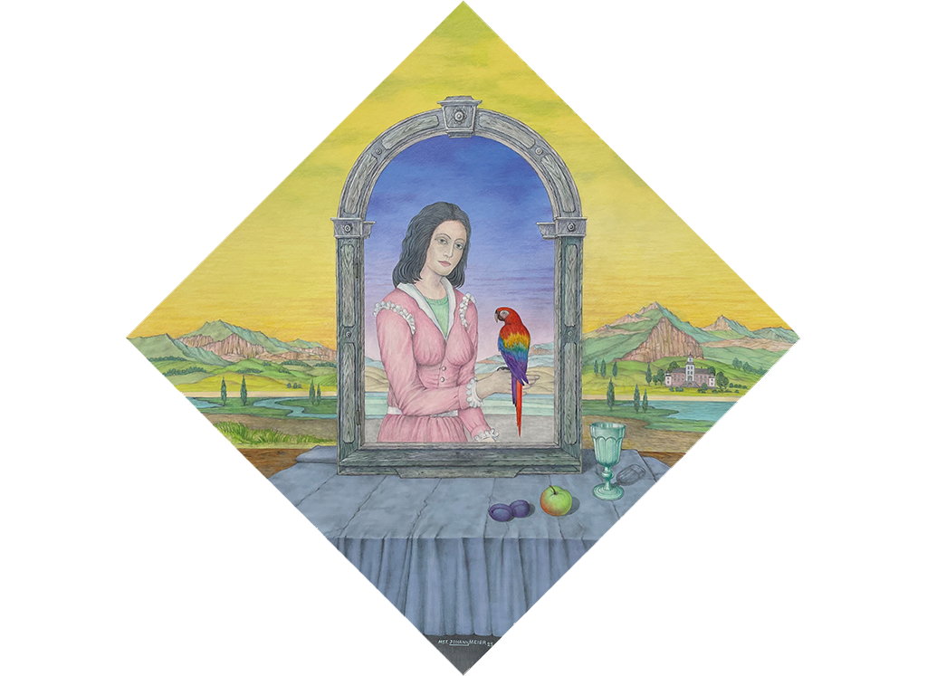 Frau mit rotem Papagei